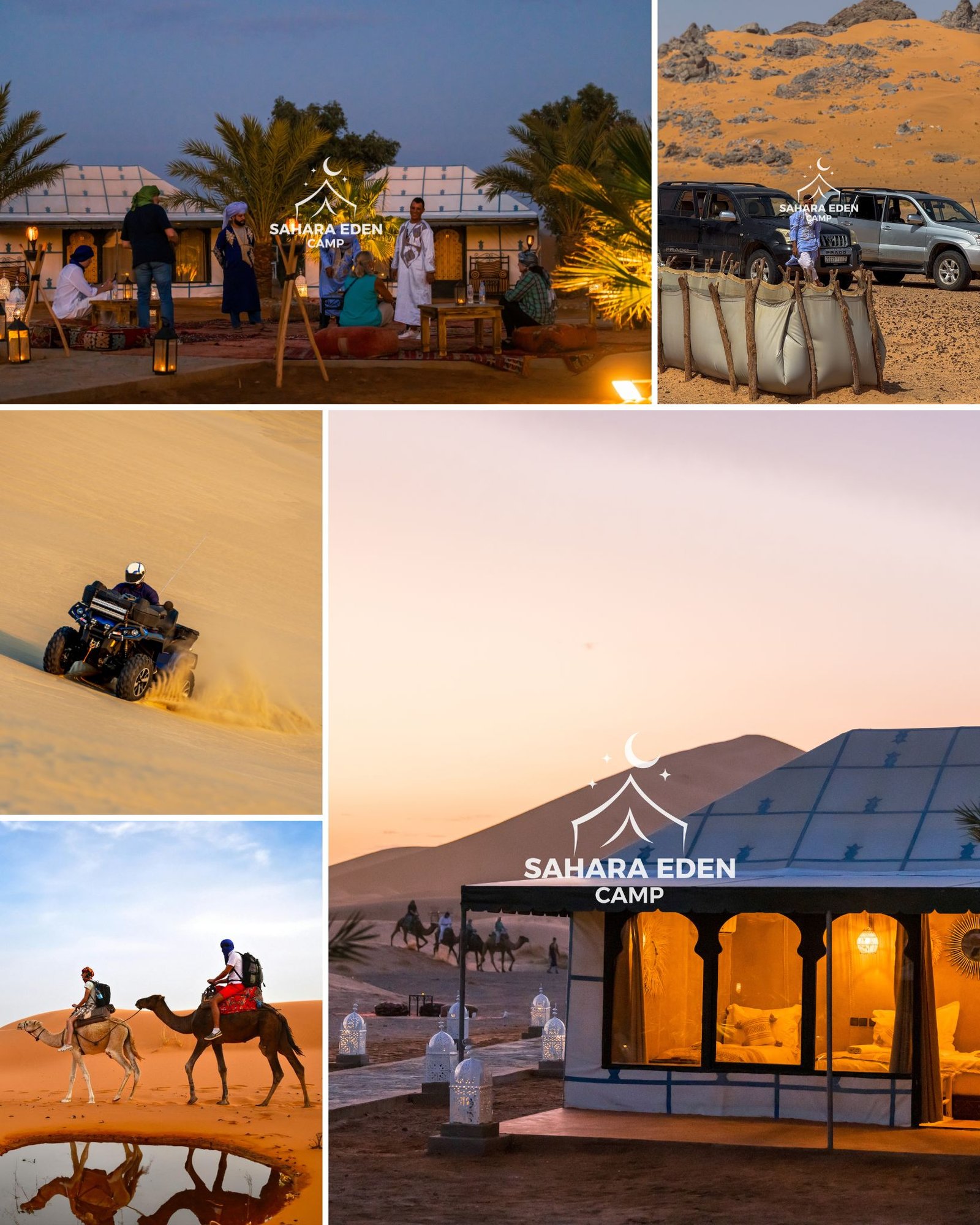 At Eden Camp, we offer a carefully selected range of Merzouga desert activities designed to help you experience the Sahara in a comfortable, well-organized, and authentic way. All activities are operated by experienced local guides and adapted to different travel styles and durations.