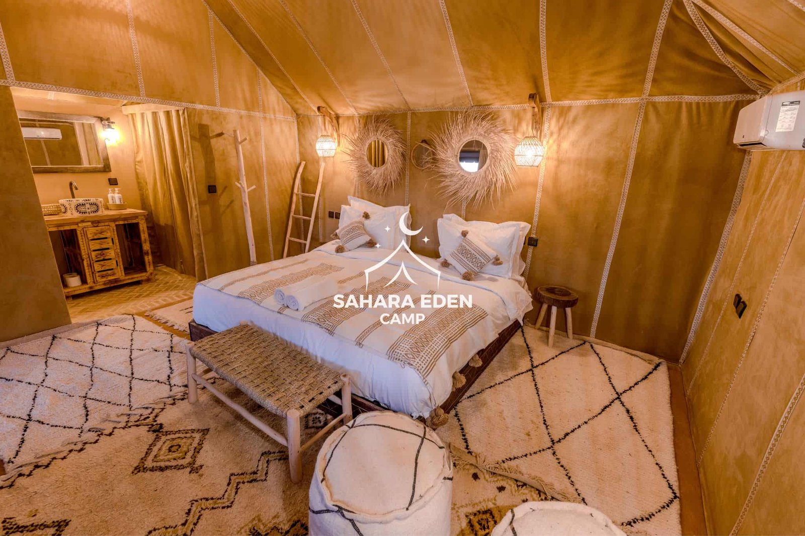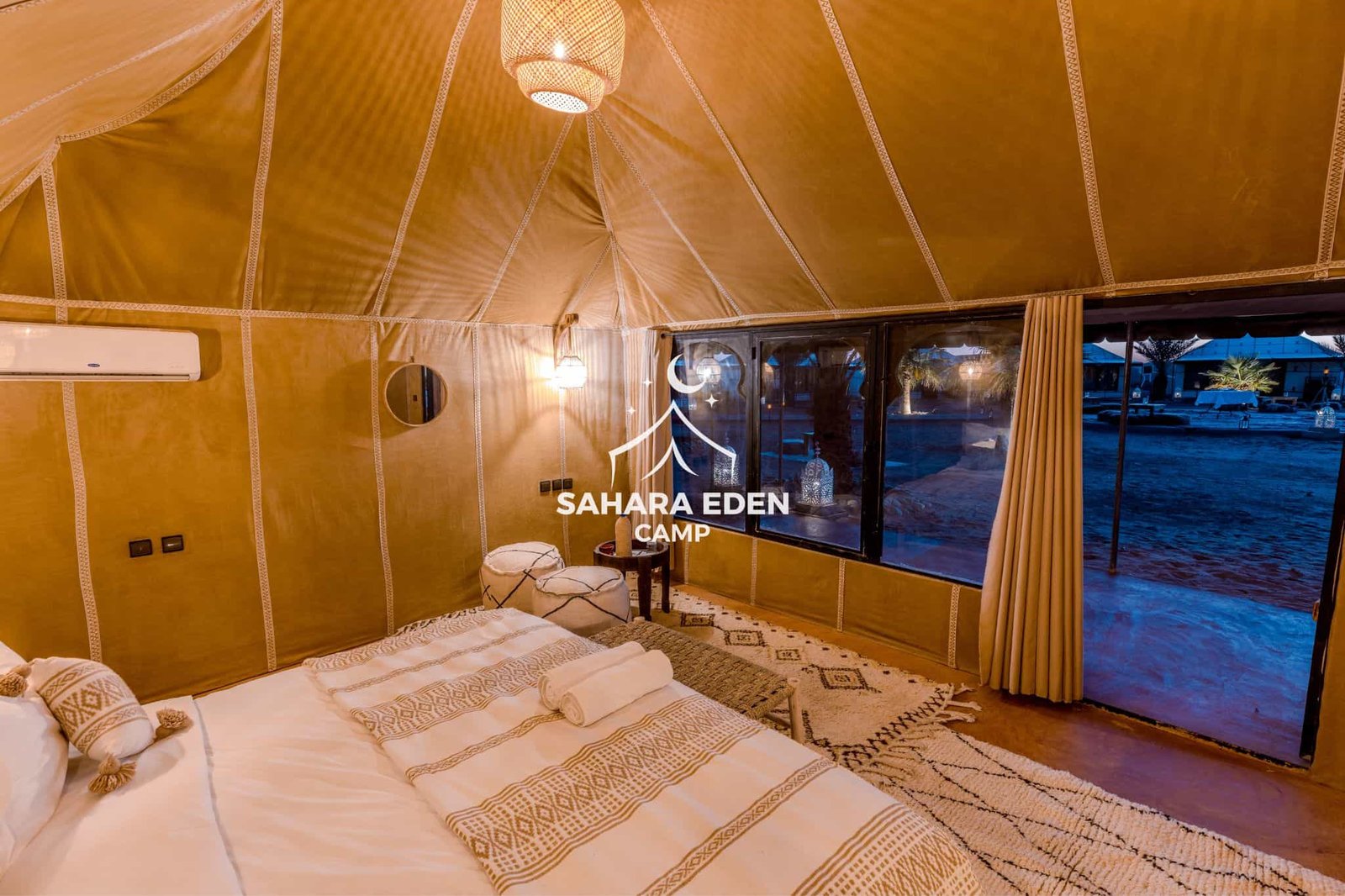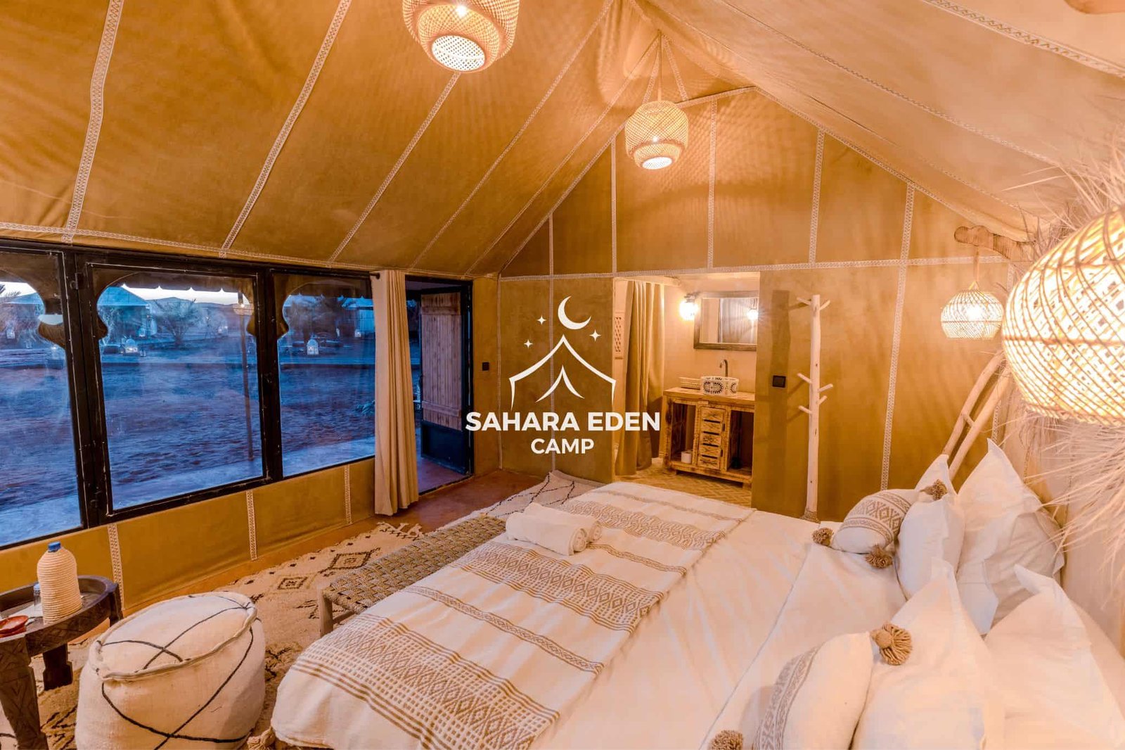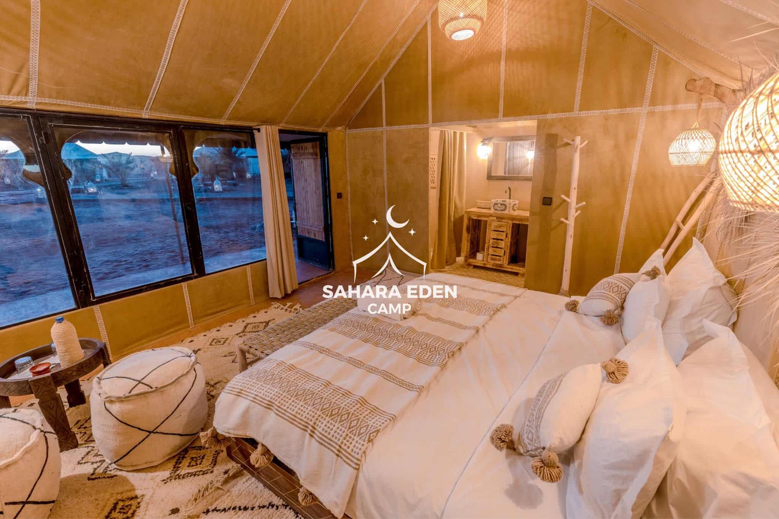Ideal for couples or travelers seeking luxury desert accommodation, this tent offers a balance of comfort, privacy, and easy access to all the facilities and activities at Sahara Eden Camp.