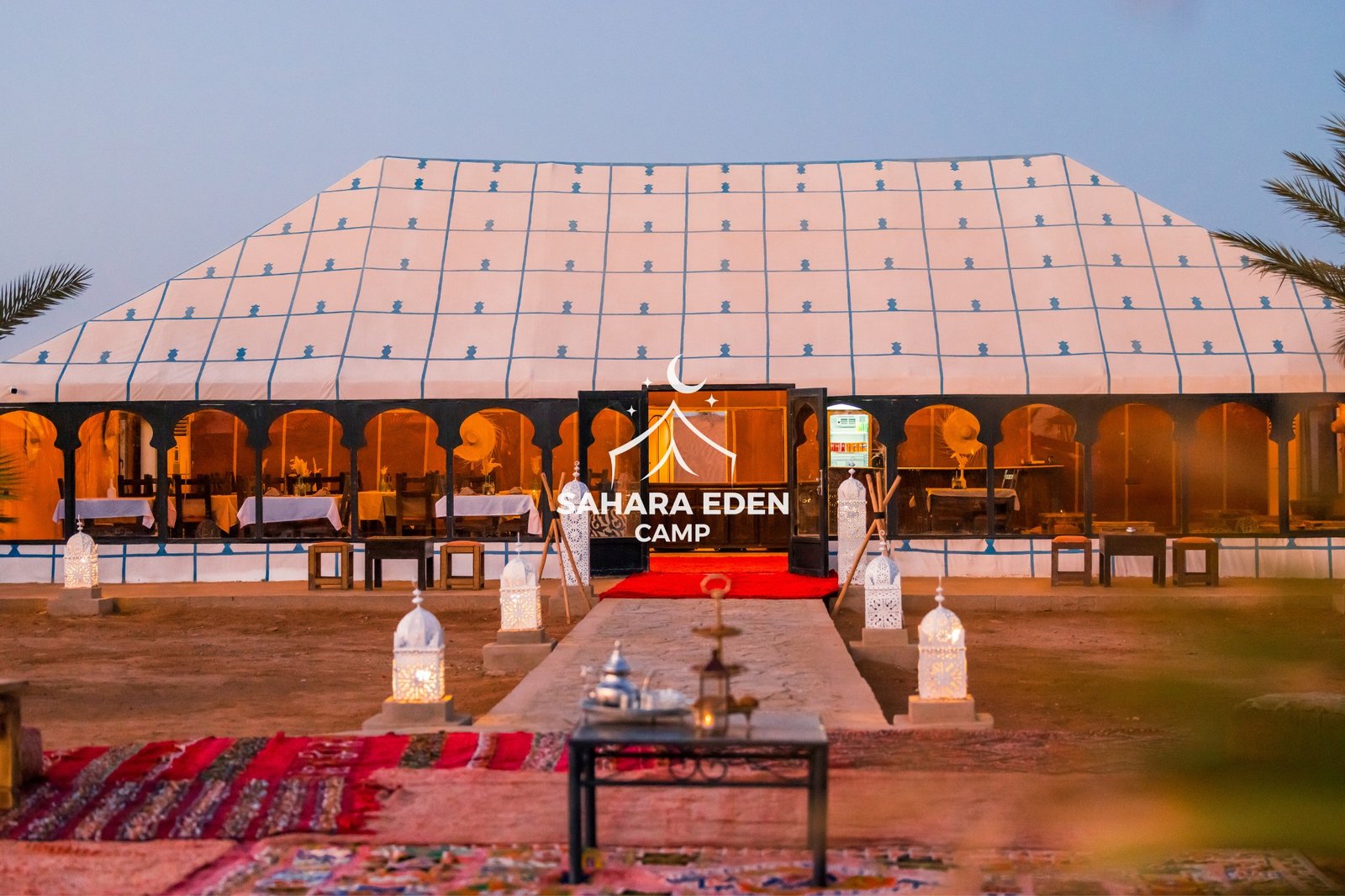At the heart of the camp, our desert restaurant serves freshly prepared Moroccan and international dishes, crafted from local ingredients and enjoyed under a canopy of stars. Whether you are here for romance, adventure, or cultural discovery, Sahara Eden Camp invites you to experience the Sahara in comfort, style, and true Moroccan hospitality.
