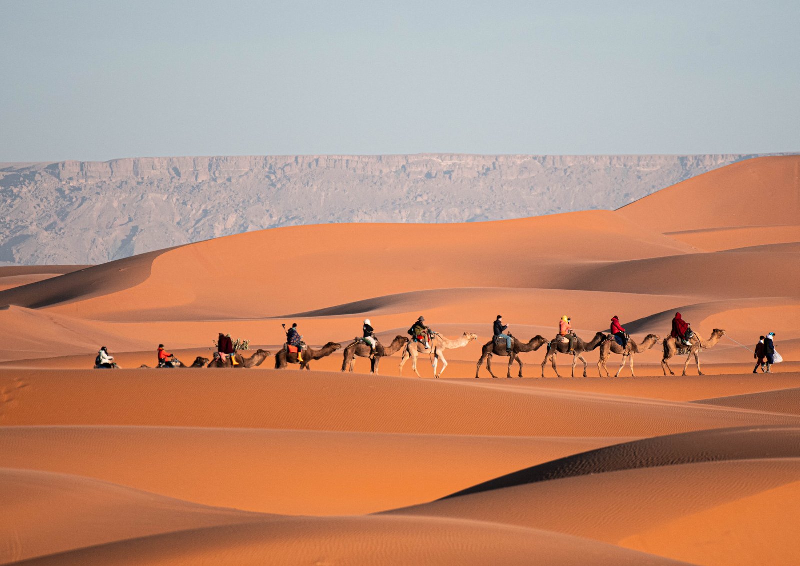 Accompanied by an experienced camel guide, you will ride calmly through the rolling dunes, following ancient desert paths as the light slowly softens. Along the way, you may stop on a high dune to watch the sun set over the Sahara, or enjoy the sunset views near the camp depending on arrival time. Upon reaching the desert camp, you’ll be welcomed with traditional mint tea and shown to your private tent.